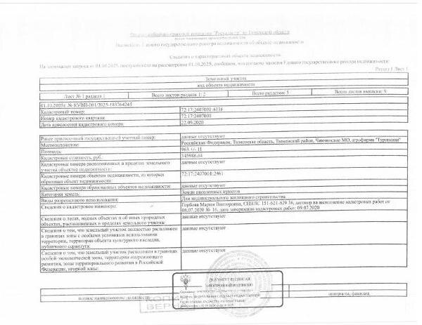 Х. Лот: Земельный участок (земли населенных пунктов, для индивидуального жилищного строительства), площадь 963 кв.м., кадастровый номер: 72:17:2407001:6116, Тюменский район, с.Чикча, агрофирма "Туринская", н/ц: 3865375 р., з-к: 579806 р., код: 0001, рег.№ 72-010704(26)-ГМУ; Канал: Госземля Тюменская область Область: обл Тюменская Район: м.р-н Тюменский Населенный пункт: с. Чикча, агрофирма "Туринская" Локация: Смотреть на карте ВРИ: Для индивидуального жилищного строительства Кадастровый номер: 72:17:2407001:6116 Кадастровая стоимость: - Вид сделки: Продажа Площадь: 963 м² Начальная цена: 3865375.00 руб. Дата завершения: 04.05.2026 Подробнее: ГИС ТОРГИ #госземля #земляотгосударства #земля #земельныйучасток #земельныеторги #торги #аукцион #продажаземли #продажа #тюменскаяобласть