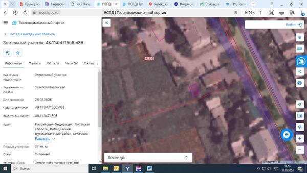 Название: Земельный участок с кадастровым номером 48:11:0471506:488 площадь 27 по адресу Российская Федерация, Липецкая область, Лебедянский
