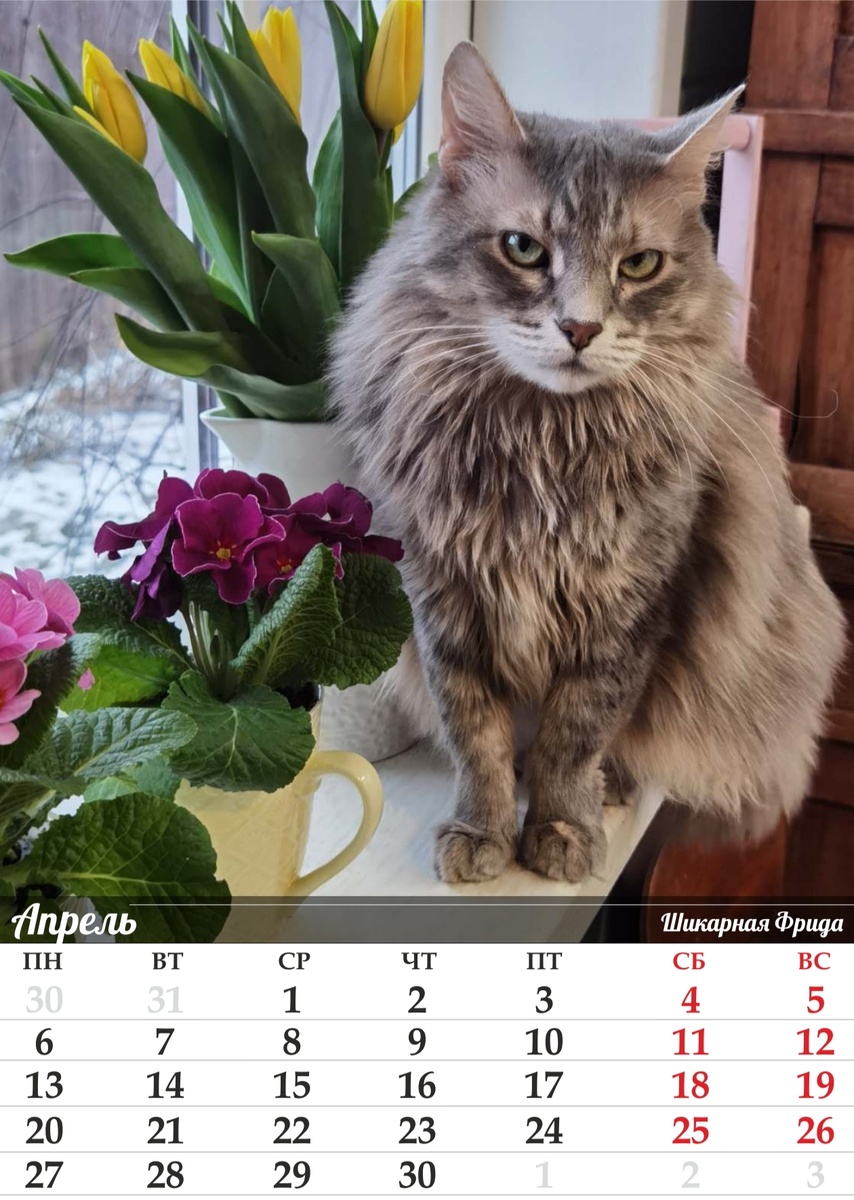 Это день смеха, но кому-то он может показаться грустным, потому что со страницы календаря на нас смотрит Фрида. Одна из наших читательниц даже сказала, что перевернёт эту картинку или завесит чем-то другим, потому что сердце разрывается на Фридусю смотреть. Не делайте так! Не надо! Смотрите на нашу Домоправительницу, любуйтесь. Конечно, нам грустно, что её не стало, но она же звезда! Разве мы перестанем пересматривать «Москва слезам не верит», раз Вера Алентова ушла? Или не будем восхищаться Бриджит Бардо? Так и наша Фрида. Она достойна того, чтобы мы на неё смотрели и помнили одну из самых ярких звёзд Оськиного дома.