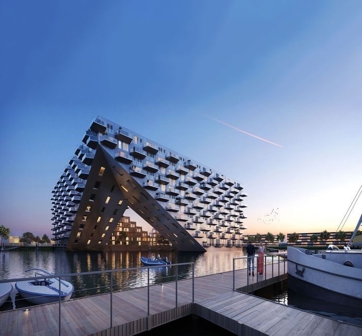 Комплекс Слюйсхейс — это гигантский куб, у которого «вырезали» угол. ✂️ Зачем? 1️⃣ Чтобы пропускать яхты во внутреннюю гавань. ⛵