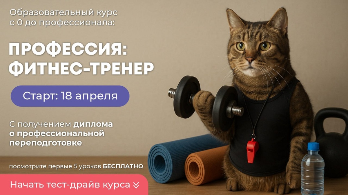 Меня зовут Владислав Николайко, я — мастер спорта по бодибилдингу и пауэрлифтингу, судья Федерации бодибилдинга России и автор книги "PROкардио". Я ненавижу бесовщину и мракобесие в спорте, потому что оно калечит людей и портит нашу профессию. Именно поэтому я собрал 15 специалистов на своём новом курсе, который основан на строго научном, доказательном подходе, и хочу пригласить тебя на этот курс. Более того, я настолько уверен в качестве нашего материала, что предлагаю тебе совершенно бесплатно ознакомиться с первыми 5 уроками из нашего будущего курса — еще до старта Жми на ссылку и забирай 5 уроков в боте прямо сейчас! @profession_fitnesstrainer_bot P.S. Ты можешь с нуля, всего за 6 месяцев, без профильного образования стать специалистом с твёрдым подходом и официальным дипломом государственного образца. Что ты теряешь? Ссылка и 5 бесплатных уроков — @profession_fitnesstrainer_bot