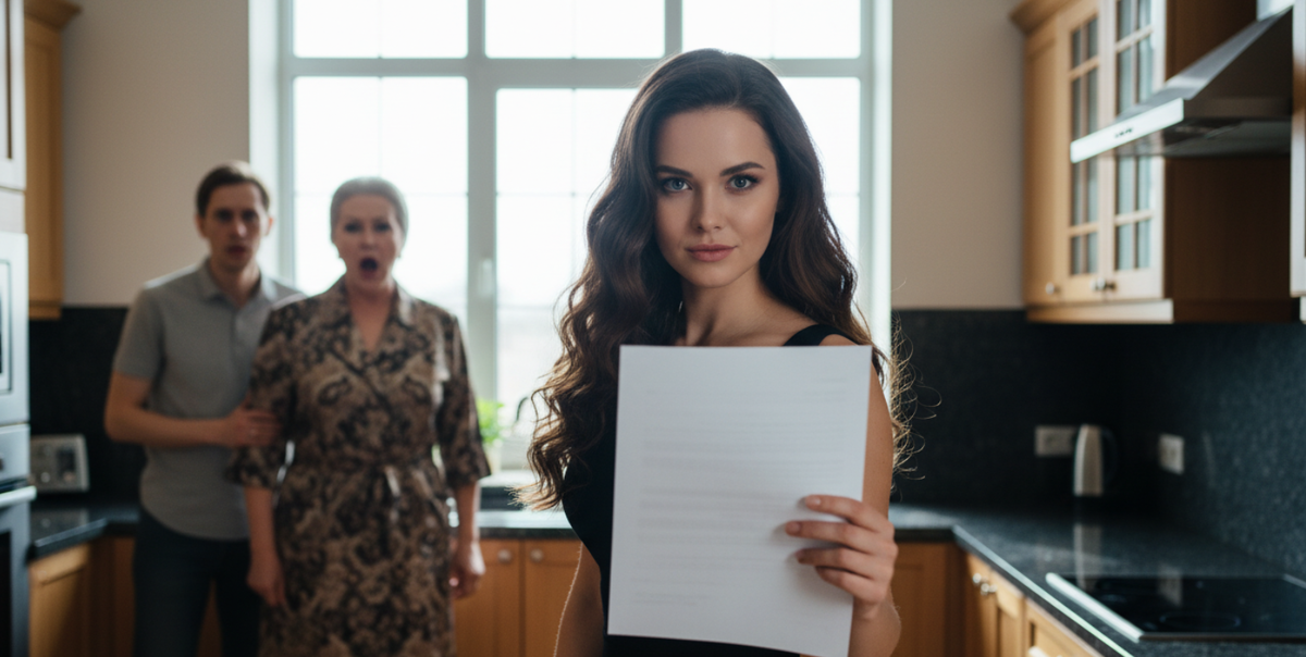 Людмила Борисовна даже не пошевелилась. Она медленно подошла к большому кухонному столу, выдвинула верхний ящик и достала оттуда прозрачный файл с плотными листами бумаги. На ее лице играла победная, почти издевательская улыбка. Она явно считала себя победителем.