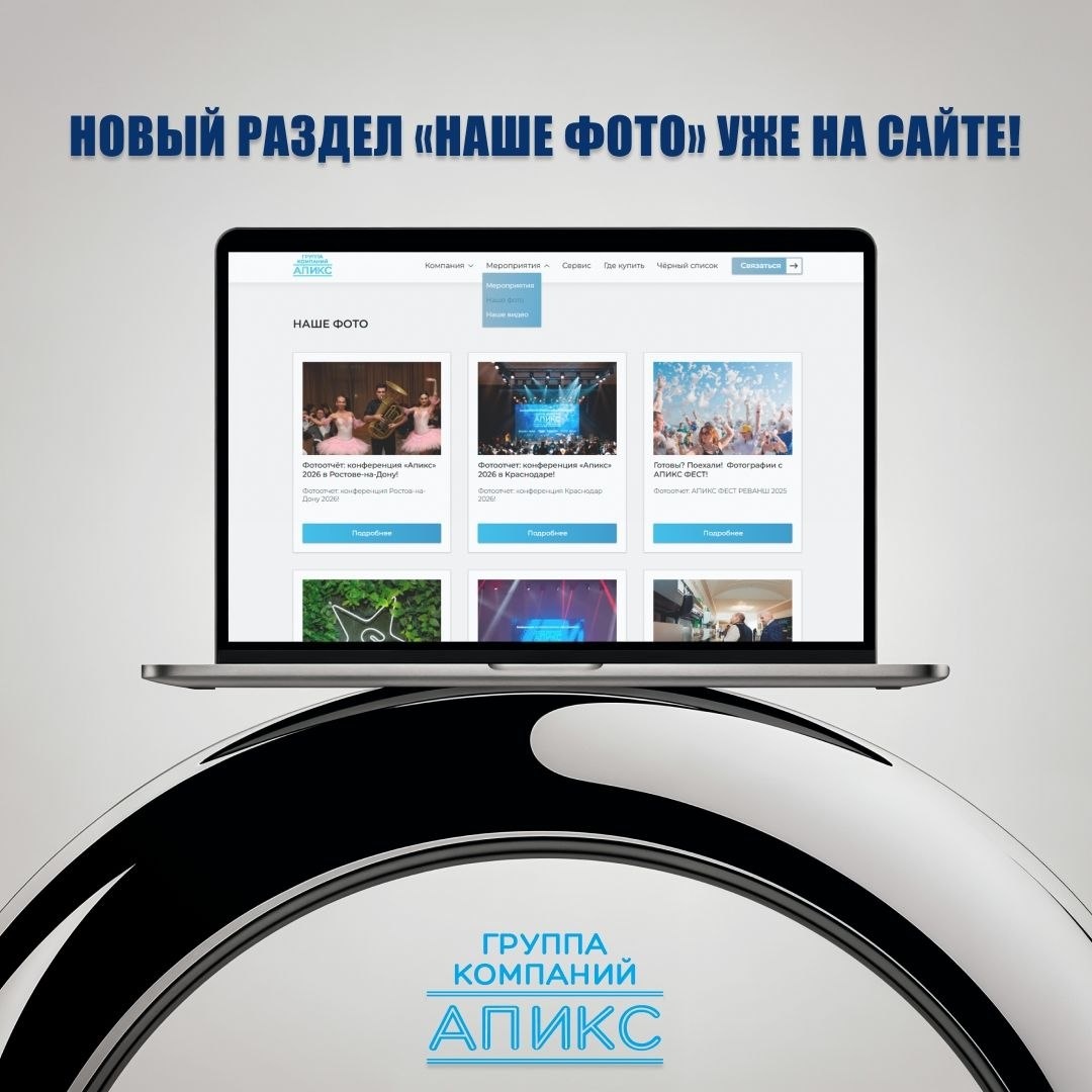 ! Запустили новый раздел на сайте Апикс — «Наше фото» в блоке «Мероприятия» Теперь все самые яркие, тёплые и драйвовые моменты со встреч, конференций и фестивалей собраны в одном месте 💙 Вдохновляйтесь, вспоминайте события и заряжайтесь позитивом вместе с нами: clck.ru/3Ssbkx