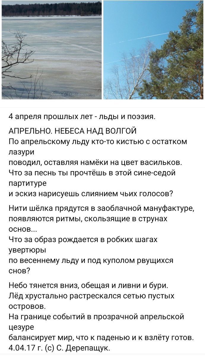 «На границе событий в прозрачной апрельской цезуре балансирует мир, что к паденью и к взлёту готов...» – казалось бы, просто метафора, ни о чём глобальном в 2017 году я, конечно, не думала. А теперь балансирую в унисон с миром и боюсь, что «ковёр», который ни разу не самолёт, помешает прилёту доченьки. Я то встречь на поезде чухчухать буду. Ой, не к дню рождения будь оно помянуто. Пожелайте нам добра и удачи, пожалуйста.