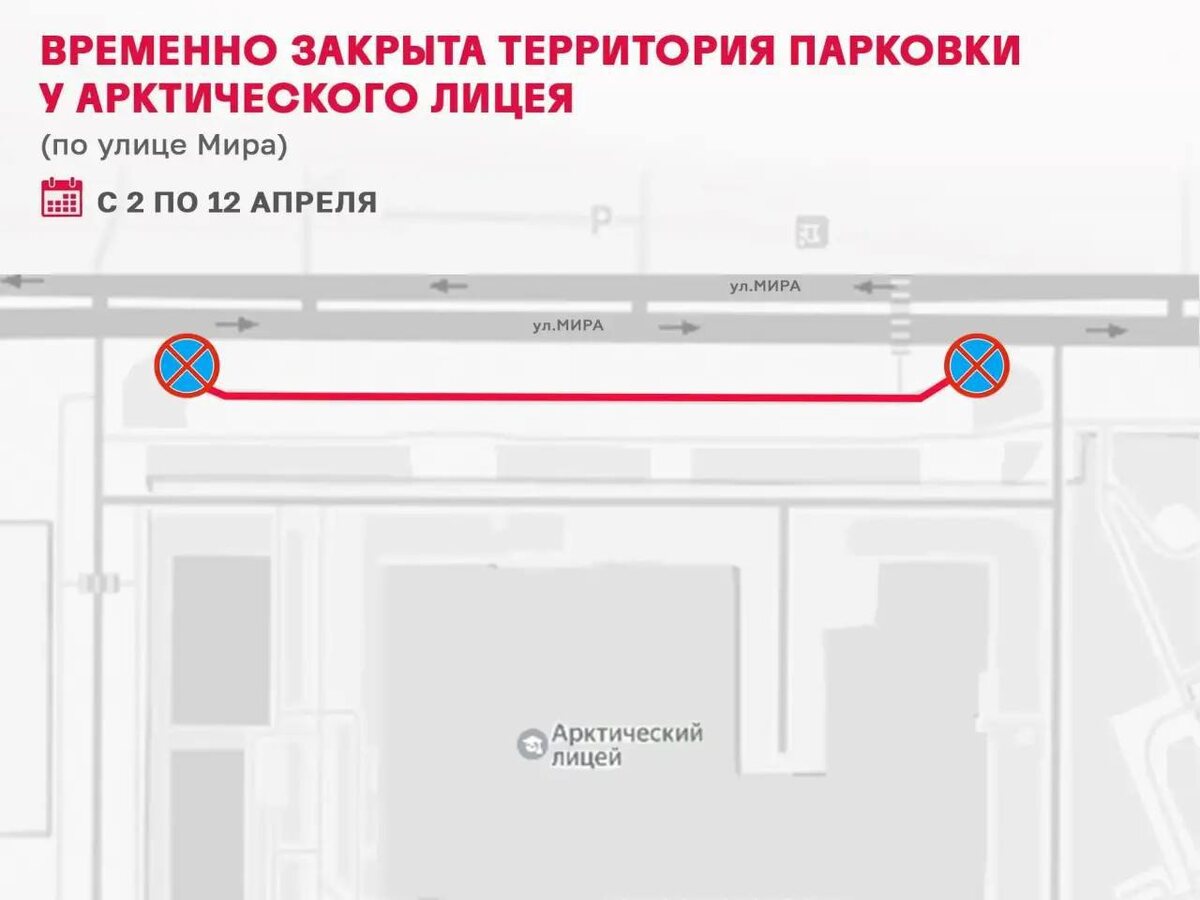 ! Участок парковочной территории у Арктического лицея со стороны улицы Мира будет временно перекрыт. Напоминаем, в период проведения заключительного этапа всероссийской олимпиады школьников с 2 по 12 апреля будут установлены дорожные знаки для снижения аварийности и устранения предпосылок совершения ДТП: 3.1 «Въезд запрещён», 3.27 «Стоянка запрещена», 8.4.11 «Кроме транспортных средств» и 8.24 «Работает эвакуатор». ❄️ НУР. Официально | Подписаться в MAX