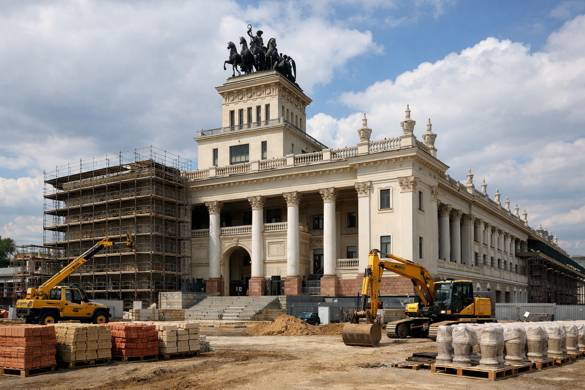 В Москве продолжается масштабный проект по восстановлению Главного корпуса Центрального Московского ипподрома — одного из ключевых объектов городской инфраструктуры и архитектурного наследия. Работы ведутся комплексно: специалисты не только возвращают зданию его исторический облик, но и адаптируют его под современные требования эксплуатации. На сегодняшний день степень готовности фасадных работ уже превысила 65%, что свидетельствует о высокой динамике строительного процесса. Главный корпус ипподрома является знаковым сооружением, построенным в конце XIX века по проекту архитекторов Ивана Барютина и Семена Кулагина. После серьезного пожара в середине XX века здание было реконструировано и приобрело черты монументальной сталинской архитектуры. Сегодня объект имеет статус регионального памятника и требует особого подхода при проведении строительных и реставрационных работ. Современная реставрация сочетает в себе сохранение исторических элементов и внедрение актуальных инженерных решений.