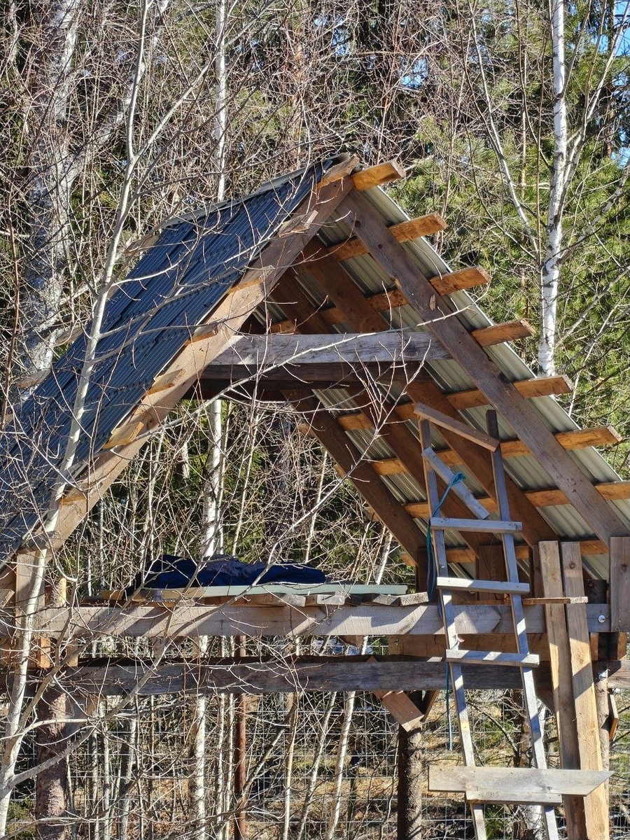 ? Я сейчас ухожу в 4-5 утра в дровник от Мейна, когда он начинает орать и бодаться. Я положила доски на второй этаж, туда пенополистирол и одеяла. Куплю себе сетку от комаров и буду там наверное вообще спать в теплое время суток. Там меня достаёт только Тимофей