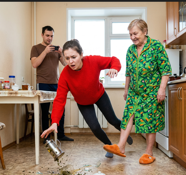 Ее нога в пушистом тапке, только что так ловко подставленная под шаг невестки, поспешно скрылась под столом с облезлой клеенкой. Антонина Сергеевна даже не пыталась скрыть широкую улыбку, разглаживая полы своего безразмерного халата.