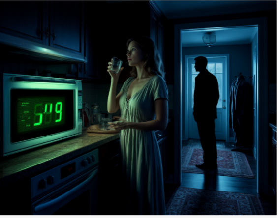 Тогда я встала, прошла на кухню, выпила воды. Машинально глянула на часы на микроволновке. Светящиеся цифры: 5:09. Я подумала: ну, без пяти пять, скоро утро. Надо поспать.