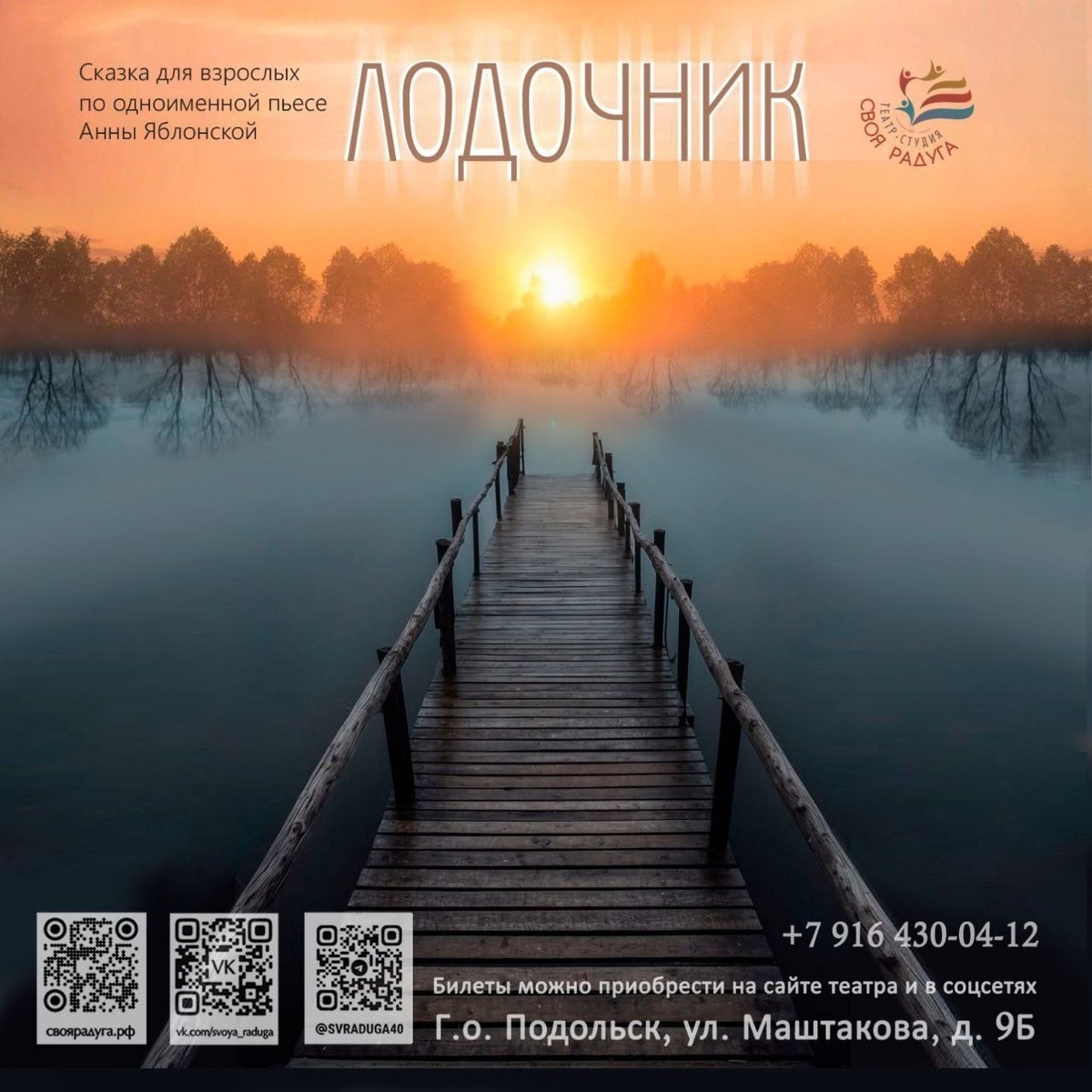 » 🍾Незатейливый сюжет жизни сторожа - алкоголика неожиданно меняется. Устроившись на работу лодочником, он встречает свою первую любовь. Главный герой понимает, что его работа не так проста, а любимая женщина находится между жизнью и смертью. ⏳ ~ 2 часа 15 минут с антрактом Невозможен вход в театр после третьего звонка! 🚫 Возраст: 16+ 📆 05.04.2026 🕒 17:00 🏢 Муниципальный театр - студия "Своя радуга" 📍 г. Подольск, ул. Маштакова, д. 9 Б (1 подъезд, 3 этаж) 💰 Цена от: 600 до 800 ₽ 🔗 Билеты: https://clck.su/MzZPK ⭐Поддержать канал голосом 🍰Где поесть в Подольске ✅ Мероприятия Подольск https://dzen.ru/id/66ed500f7b5671493eca3fd6 https://vk.ru/podolsk_events http://dzen.ru/podolsk_events