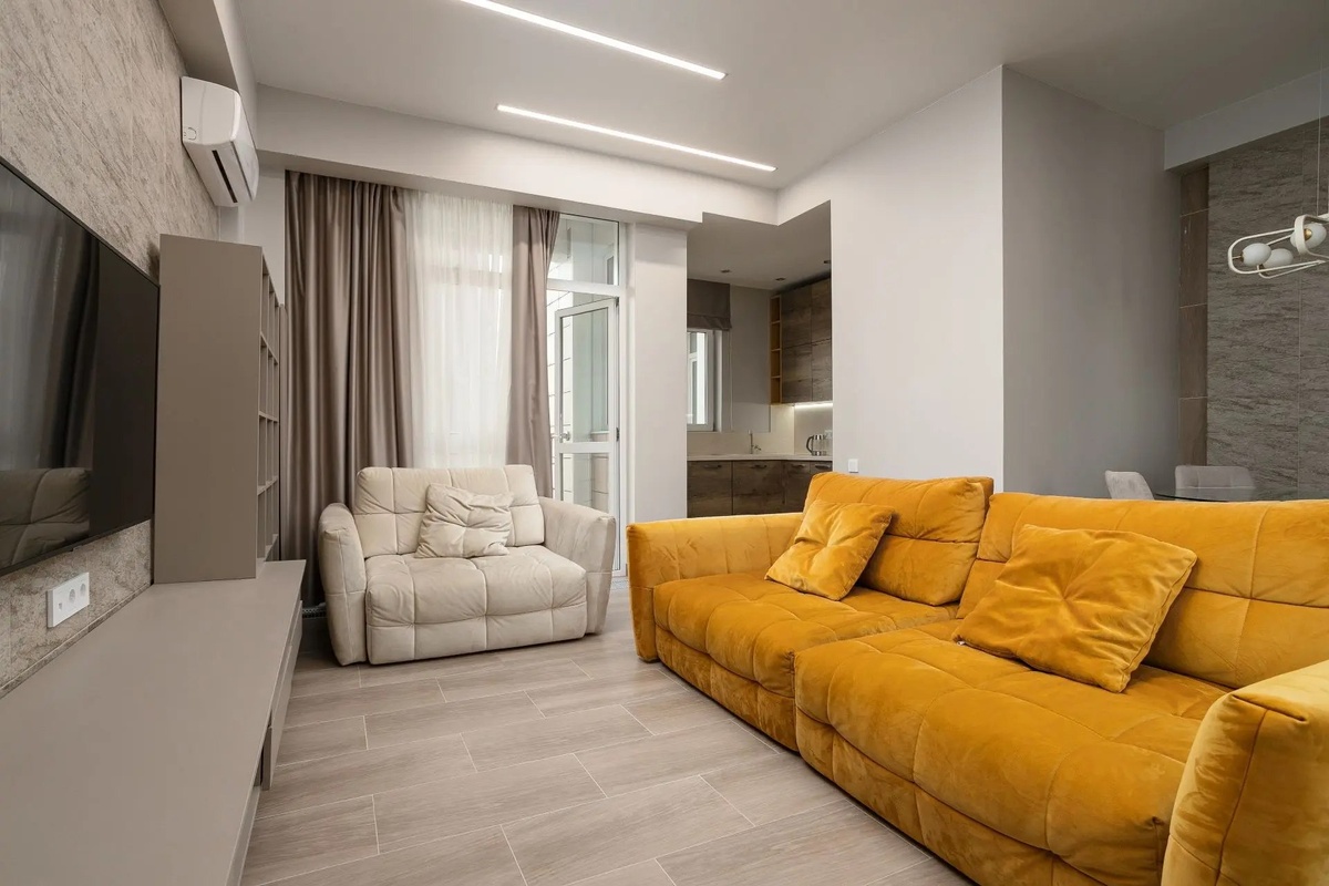 ✨ Кухня‑зал + гардеробные