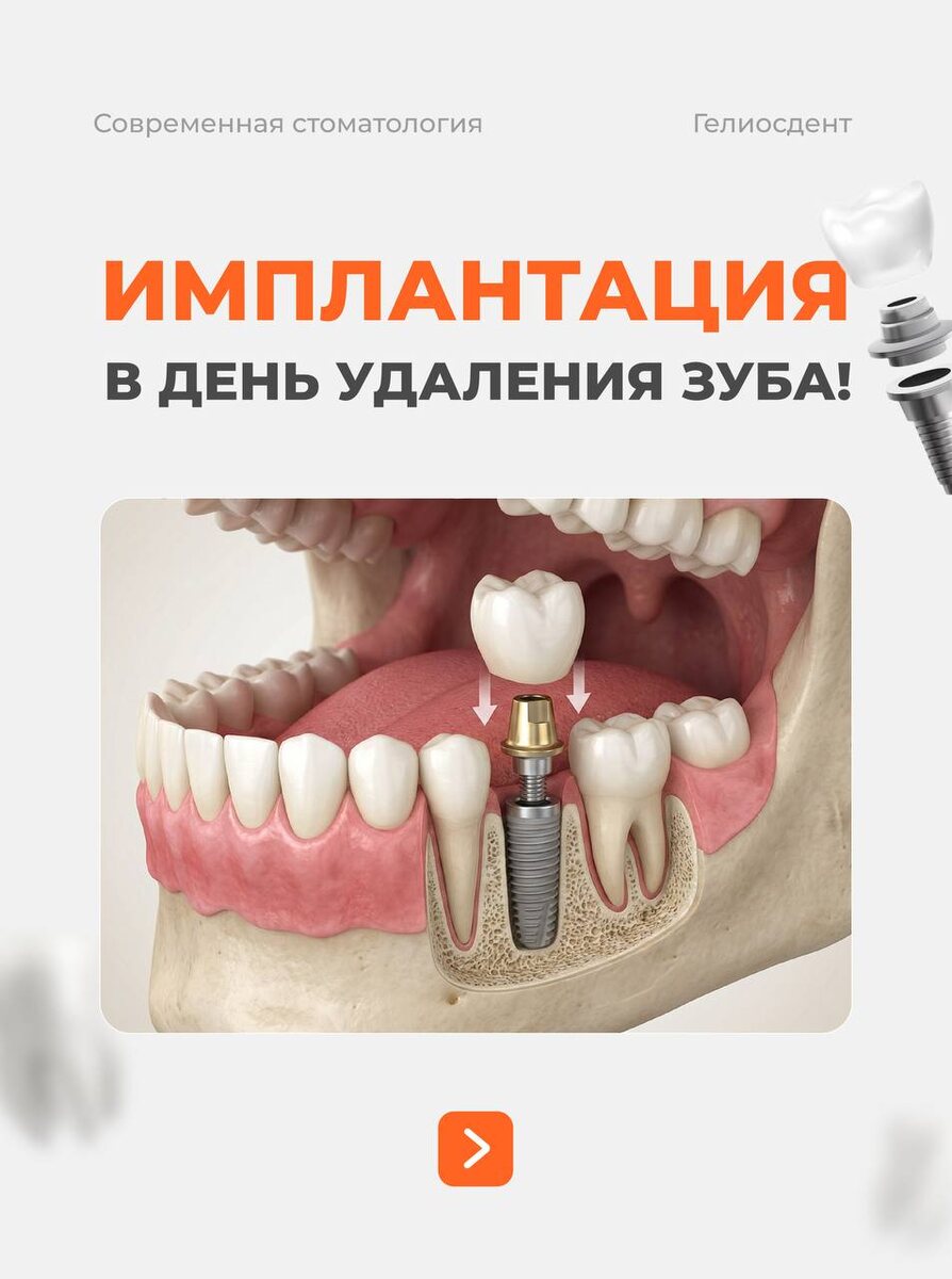 ! Думаете, что восстановление зуба — это марафон на целый год и месяцы ожидания, пока заживёт лунка? У нас для вас есть отличная новость: в современной стоматологии работает принцип «здесь и сейчас». Узнайте о нём в карточках 👉🏻 Гелиосдент — стоматология, которой доверяют🧡 📍ул. Кузнецова, 3 📍ул. Победы, 7 📞+7 (343) 317-33-32