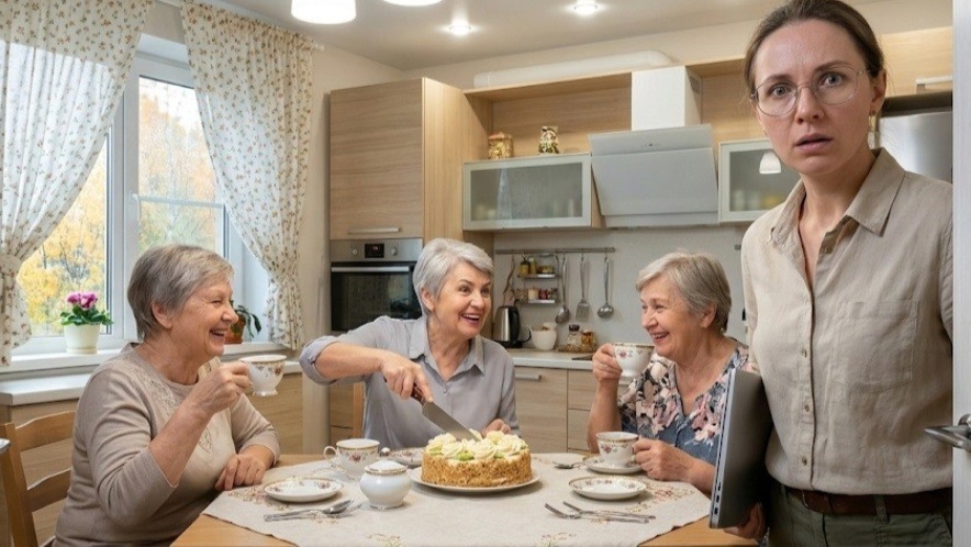 На кухне кипела бурная жизнь. Свекровь по-хозяйски расставляла на столе парадные чашки. Те самые чашки из тонкого фарфора, которые Вера покупала специально для десятой годовщины их свадьбы. За столом сидели две незнакомые пожилые женщины. Они увлечённо обсуждали цены на сахар в соседнем сетевом магазине. На столе красовался покупной торт с жирными кремовыми розочками. Галина Васильевна резала его большим ножом для мяса. Липкие крошки щедро падали на чистую льняную скатерть. Она обернулась на тихие шаги невестки и приветливо махнула сухой рукой. Она громко объявила своим подругам, что это жена её любимого сына. Свекровь с улыбкой попросила Веру не мешать им пить чай. Она добавила, что они с девочками давно не виделись и хотят посидеть в уютной обстановке без лишних посторонних глаз.