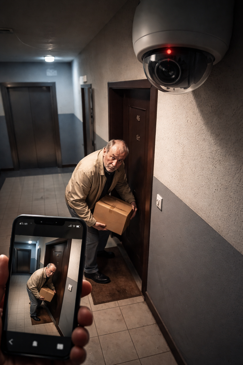 С тех пор прошло полгода. Камера всё так же смотрит, уведомления приходят исправно. Николай Степаныч, если встречается в лифте, отводит глаза и жмётся к стенке. Посылки больше не пропадают.