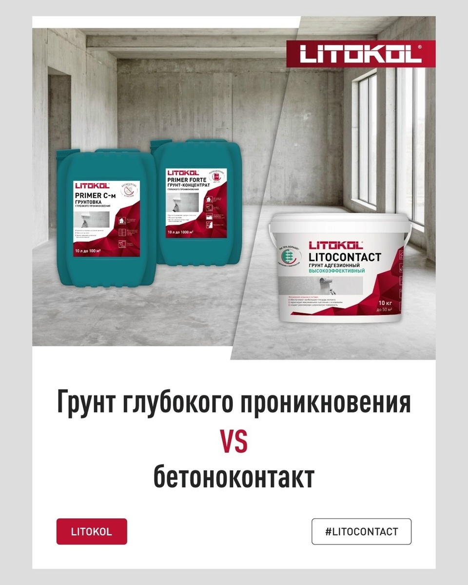 Когда НЕ НУЖЕН бетоноконтакт? Бетоноконтакт — это мощный инструмент в арсенале мастера, который значительно повышает качество отделочных работ. Однако, бетоноконтакт – это не универсальное средство и не всегда он так уж и необходим. Давайте разбираться, в каких случаях он нужен, а когда достаточно привычных нам грунтов глубокого проникновения. Итак, в большинстве строительных задач, работа грунта заключается в следующем: ☑️ обеспыливание поверхности (например, на мелящих основаниях); ☑️ снижение и выравнивание водопоглощения пористых поверхностей перед дальнейшим нанесением минеральных покрытий (например, грунтуем пено- газоблоки перед оштукатуриванием); ☑️ снижение расхода ЛКМ при окраске минеральных поверхностей (например, стены после шпатлевания перед последующей окраской интерьерными красками). И во всех этих случаях на помощь придут грунты глубокого проникновения. В нашем ассортименте это Primer C (готовый к применению грунт глубокого проникновения) или Primer Forte (грунт-концент