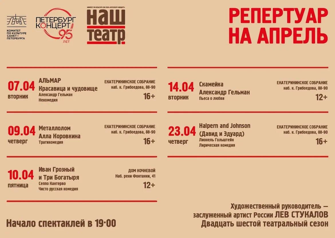 Не пропустите апрельскую афишу «Нашего театра»!