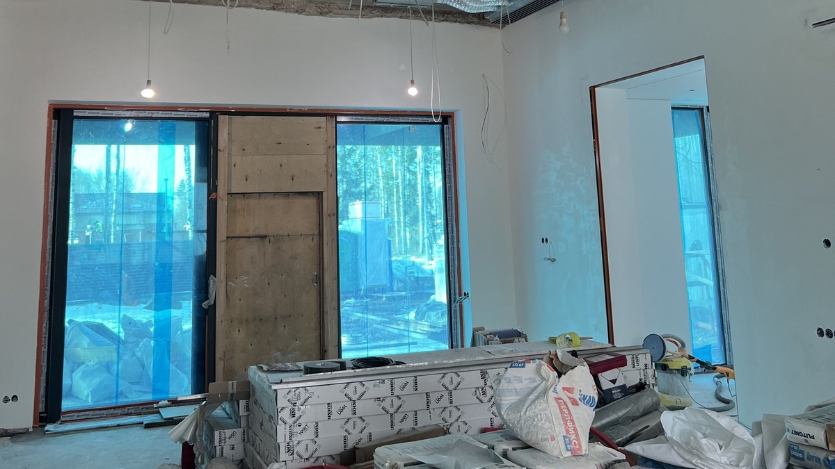 🏠 В гостиной стены готовятся к дальнейшей покраске, частично выполнен потолок из гипсокартона. На третьем фото можно рассмотреть внутренние блоки части системы вентиляции дома. На фото из котельной: газовый котел мощностью 45кВт с дистанционной системой контроля и управления Zont, а также бойлер для горячей воды. Архитектурный проект М481 #проектм481