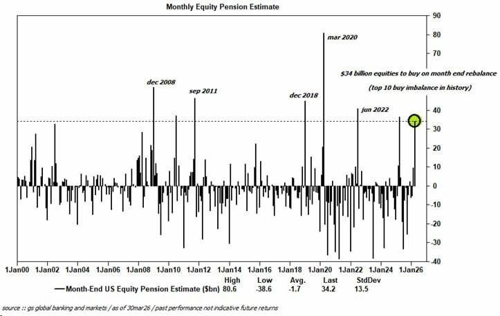 Π ΠΊΠΎΠ½ΡΡ ΠΊΠ²Π°ΡΡΠ°Π»Π° Π°ΠΌΠ΅ΡΠΈΠΊΠ°Π½ΡΠΊΠΈΠ΅ ΠΏΠ΅Π½ΡΠΈΠΎΠ½Π½ΡΠ΅ ΡΠΎΠ½Π΄Ρ ΠΏΠΎΠΊΡΠΏΠ°ΡΡ Π°ΠΊΡΠΈΠΈ Π½Π° ΡΠ΅Π±Π°Π»Π°Π½ΡΠΈΡΠΎΠ²ΠΊΠ΅ Π½Π° Π±Π»ΠΈΠ·ΠΊΡΡ ΠΊ ΠΈΡΡΠΎΡΠΈΡΠ΅ΡΠΊΠΎΠΌΡ ΡΠ΅ΠΊΠΎΡΠ΄Ρ ΡΡΠΌΠΌΡ $34 ΠΌΠ»ΡΠ΄. ΠΡΠ΅ΡΠ°ΡΠ½ΠΈΠΉ ΡΠΎΡΡ Π² Π°ΠΊΡΠΈΡΡ