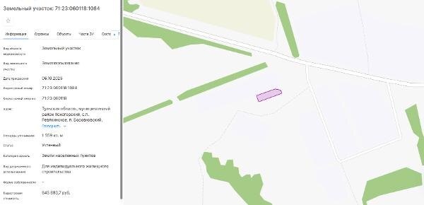Название: право заключения договора аренды земельного участка из земель населенных пунктов с кадастровым номером 71:23:060118:1084, площадь