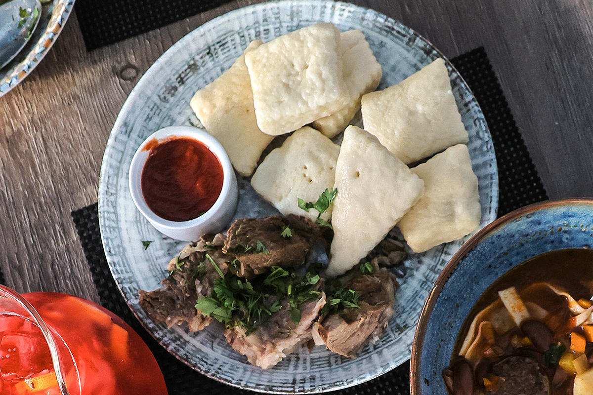 Хычины — это, пожалуй, самое популярное блюдо балкарской и карачаевской кухни. Но выглядит оно у этих двух родственных народов совершенно по-разному. Заказав балкарский хычин, вы получите лепешку из очень тонкого теста с начинкой из сыра и картошки, сыра и зелени, мяса и так далее — в зависимости от наличия блюд в меню разных заведений. Готовят его на сухой сковороде, а затем обильно смазывают сливочным маслом. Карачаевский же хычин гораздо толще, жарится в большом количестве масла (считай, во фритюре). Хотя принцип начинки в тесте все тот же. Кстати, подобные тонкие лепешки с начинкой можно встретить в национальной кухне практически любого народа, живущего на Кавказе. Это и дагестанские чуду, и вайнахский хингалш (тут снова не путать с хинкалом и хинкали).