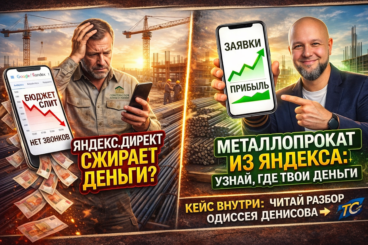 Владелец бизнеса решает заказать рекламу в интернете. Подрядчики делают настройку Яндекс Директ. Бюджет списывается каждый день, графики показывают, что люди заходят на сайт... а телефон в отделе продаж предательски молчит. Снабженцы не звонят, фуры стоят пустые. Бюджет улетает в черную дыру. Знакомая боль? Как интернет-маркетолог, я регулярно вытаскиваю бизнесы из таких ситуаций. И причина почти всегда кроется в двух базовых ошибках, которые в упор не видят владельцы. Разберем это на моем недавнем кейсе металлоторговой компании «МТК Строй-ДОМ». Внимание: этот механизм слива бюджета абсолютно одинаково работает и в автосервисах, и в стоматологиях, и при продаже кухонь на заказ. Когда клиент пришел ко мне с жалобой на плохие заявки, я первым делом открыл его сайт. И всё сразу встало на свои места. Бизнесмен вливал сотни тысяч рублей в трафик, но его ресурс был абсолютно не адаптирован под мобильные телефоны. Подумайте логически: кто заказывает арматуру оптом? Прорабы, снабженцы и инжене