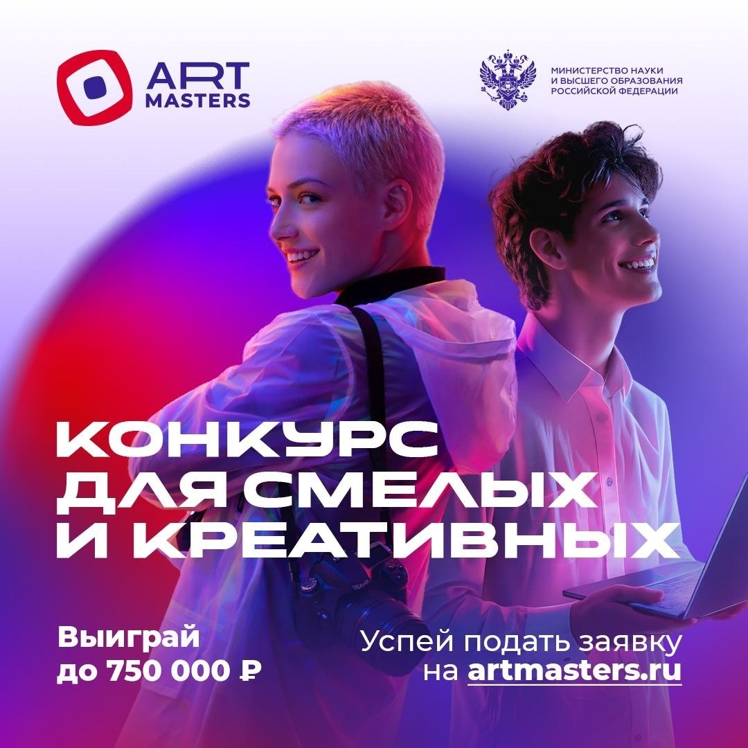» Открыт прием заявок на участие в VII сезоне Национального открытого чемпионата творческих компетенций «ArtMasters» в основной возрастной категории. В 2026 году чемпионат проводится по 20 направлениям и объединяет участников со всей страны. К участию приглашаются обучающиеся и выпускники колледжей и вузов, а также молодые специалисты в возрасте от 18 до 35 лет. Победителей ждут: — денежные сертификаты: 🥇 до 750 тыс. рублей 🥈 до 500 тыс. рублей 🥉 до 250 тыс. рублей — стажировки и возможность трудоустройства в компаниях-партнерах — доступ к профессиональному оборудованию — интеграция финальных работ в реальные проекты креативных индустрий Подать заявку можно до 30 апреля на официальном сайте: https://artmasters.ru/ Чемпионат реализуется в рамках национального проекта «Молодежь и дети» и направлен на развитие кадрового потенциала креативных индустрий, поддержку талантливой молодежи и формирование профессионального сообщества.