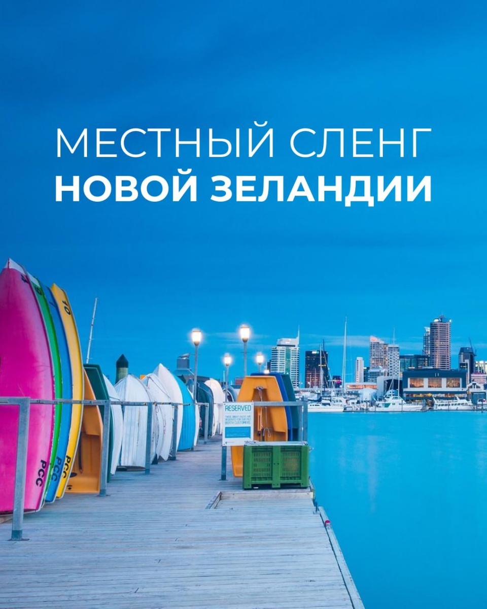 : Kiwi — новозеландец Jandals — сланцы Chilly bin — переносной холодильник Dairy — маленький магазин у дома Sweet as — «классно», «всё ок» Со временем начинаешь понимать и использовать сам 👌 Делитесь, какие слова или выражения слышали в разных диалектах? ⬇️