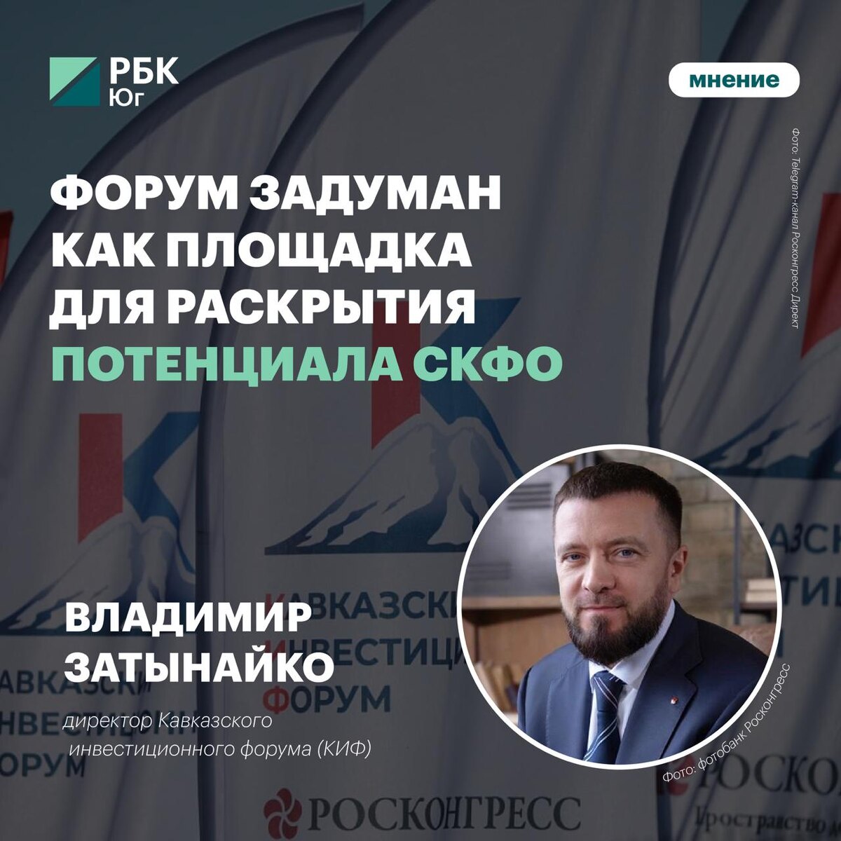 Кавказский инвестиционный форум, который с 28 по 30 апреля пройдет в Минводах, будет проведен на Северном Кавказе в четвертый раз. В предыдущие три года в рамках КИФ было подписано более 230 соглашений на 460 млрд руб. О том, каким образом крупный форум способствует социально-экономическому развитию СКФО и что планируется в рамках КИФ-2026, в интервью РБК Кавказ рассказал заместитель директора Фонда Росконгресс, директор КИФ Владимир Затынайко.