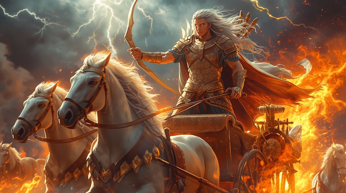 Там, в вышине, где облака становятся горами, а ветра — реками, стоял на колеснице Перун. Не тот Перун из учебников — бородатый старик с молотом. Нет. Он был молод, страшен и прекрасен, как первая гроза после долгой засухи. Глаза его горели белым светом, а волосы струились на ветру, и каждый волос был как молния, приручённая и закованная в косу.