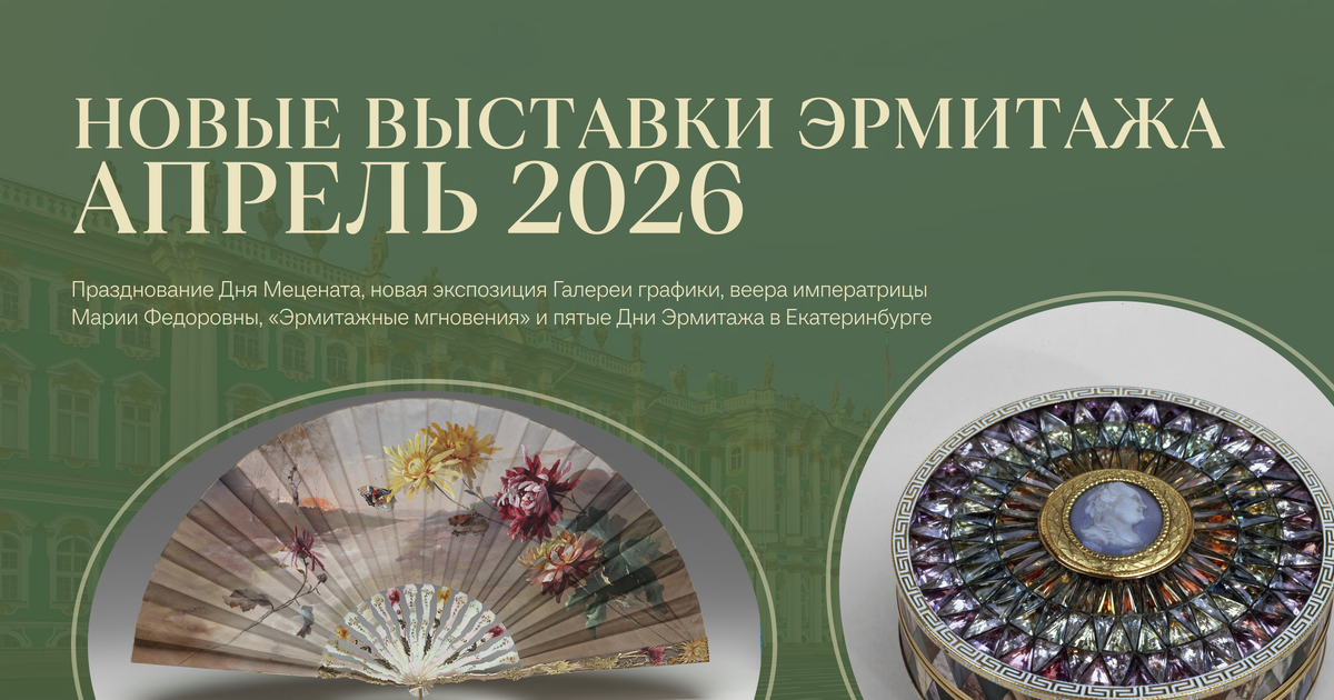 Государственный Эрмитаж представляет 7 новых выставок, которые откроются в апреле 2026 года в самом музее и за его пределами. Эти экспозиции будут посвящены разным историческим эпохам и культурным явлениям — от графики «малых мастеров» до вееров императрицы Марии Федоровны; от эпохи правления Екатерины Великой до современной летописи музейной жизни, рассказанной в фотографиях. Кроме того, музей отметит День Мецената сразу двумя выставками. А в Екатеринбурге пройдут пятые Дни Эрмитажа.