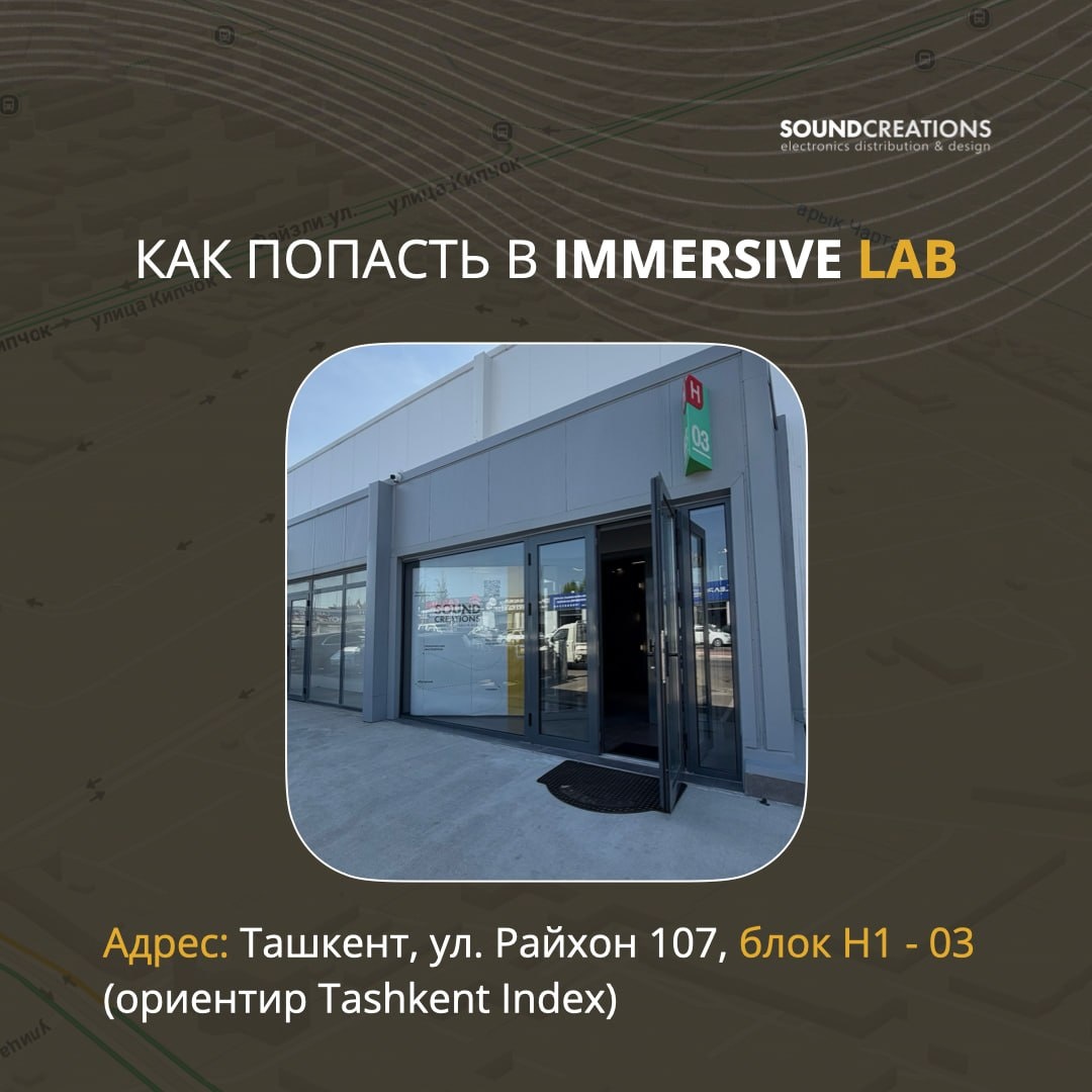 ? Ждём вас сегодня на открытии нового технологического пространства в Ташкенте. 📍 Адрес: Ташкент, ул. Райхон, 107 блок H1–03 ориентир: Tashkent Index 🚕 Самый удобный способ: введите в Yandex Go / Yandex Taxi — Sound Creations и выберите нашу локацию. Если будете рядом и не уверены, что нашли нужный вход — ориентируйтесь на блок H1–03 и вход с банером Sound Creations на входе. До встречи в Immersive Lab — уже совсем скоро увидимся на открытии!