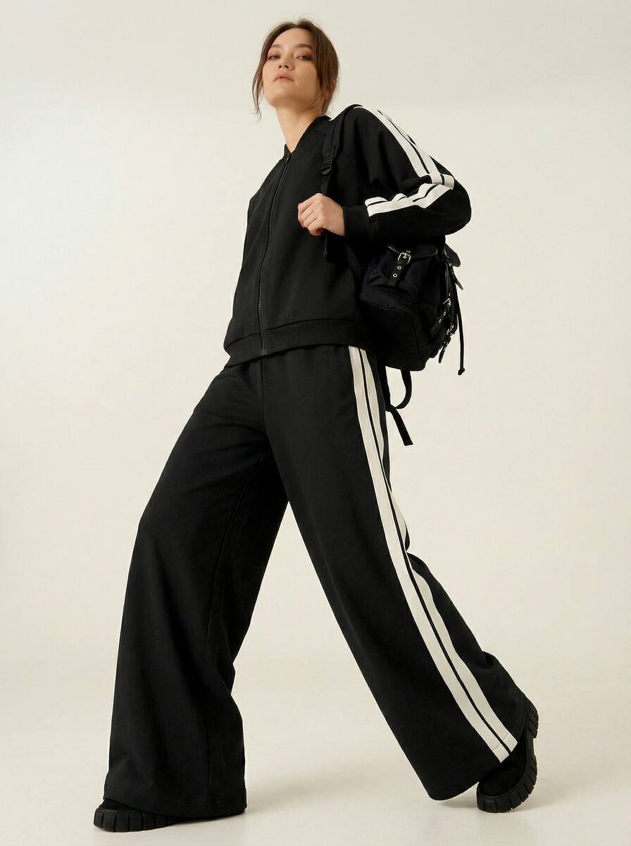 Графичные лампасы, укороченный бомбер-зипка и широкие брюки с высокой талией — выверенные пропорции, которые делают эти костюмы максимально удобными. ___ Ткань — фактурный хлопок с эластаном: в меру плотный, отлично держит форму. ________________ 🛍ПРИМЕРКА В НАШЕМ ШОУ-РУМЕ Москва, Осенний бульвар 7 кор1, ТЦ Матрица Доставка:🚚 ✅По Москве ✅России ✅СНГ -СДЭК - Почта России - курьер #friendlymoda