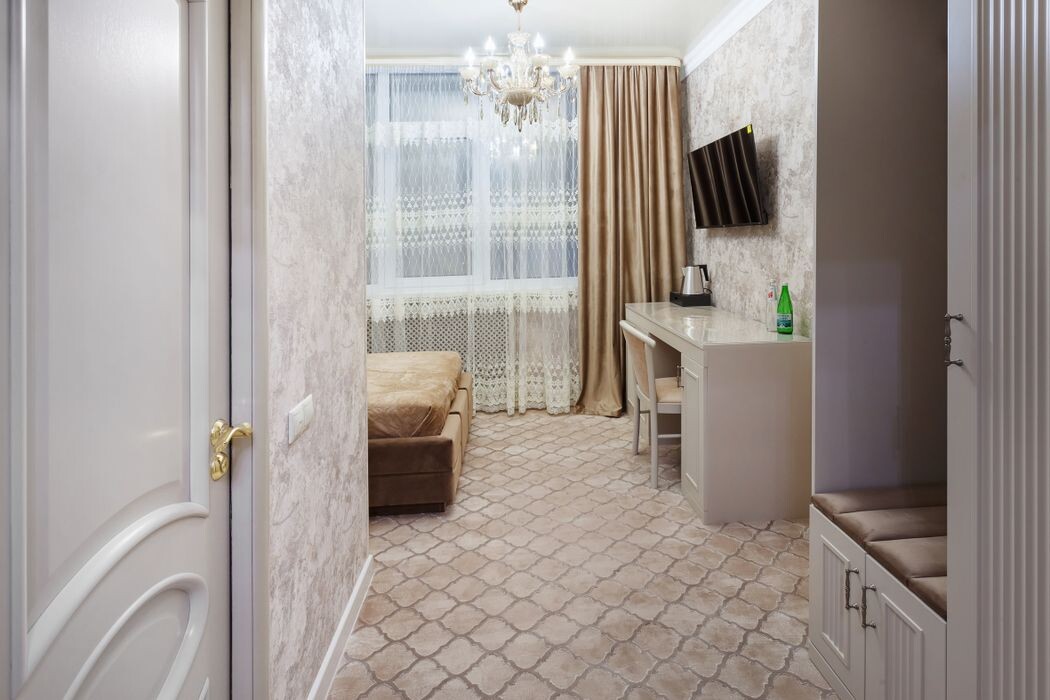 Мини-гостиница Акрополь в Пятигорске предлагает идеальные условия для комфортного отдыха, сочетая современный стиль и домашний уют. С площадью 18 м², каждое из одноместных номеров прекрасно оснащено, включая кондиционер, беспроводной интернет и телевизор. Гостям предоставляются все необходимые удобства: рабочий стол, электрический чайник, а также прихожая с шкафом для одежды. Номера, выполненные в актуальном дизайнерском решения, создают расслабляющую атмосферу, дополняемую видом на горы – идеальное место для уединения после насыщенного дня. Цены на отдых начинаются от 3500 рублей за сутки, что делает этот вариант доступным для гостей разного уровня комфортности.