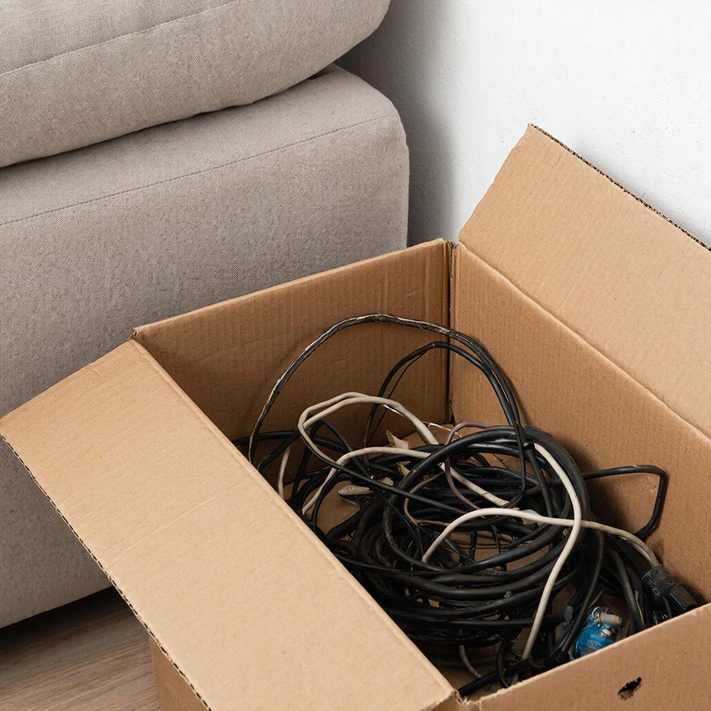 Я вспомнил, что кто-то когда-то говорил: «Начни с малого». Ну, я и начал с малого — с той коробки, о которую споткнулся. Открыл. А там… провода. Очень много проводов. Зачем? Почему? Я же уже покупаю всё с USB-C. Но нет, мои «провода на всякий случай» жили в своём доме из картона.