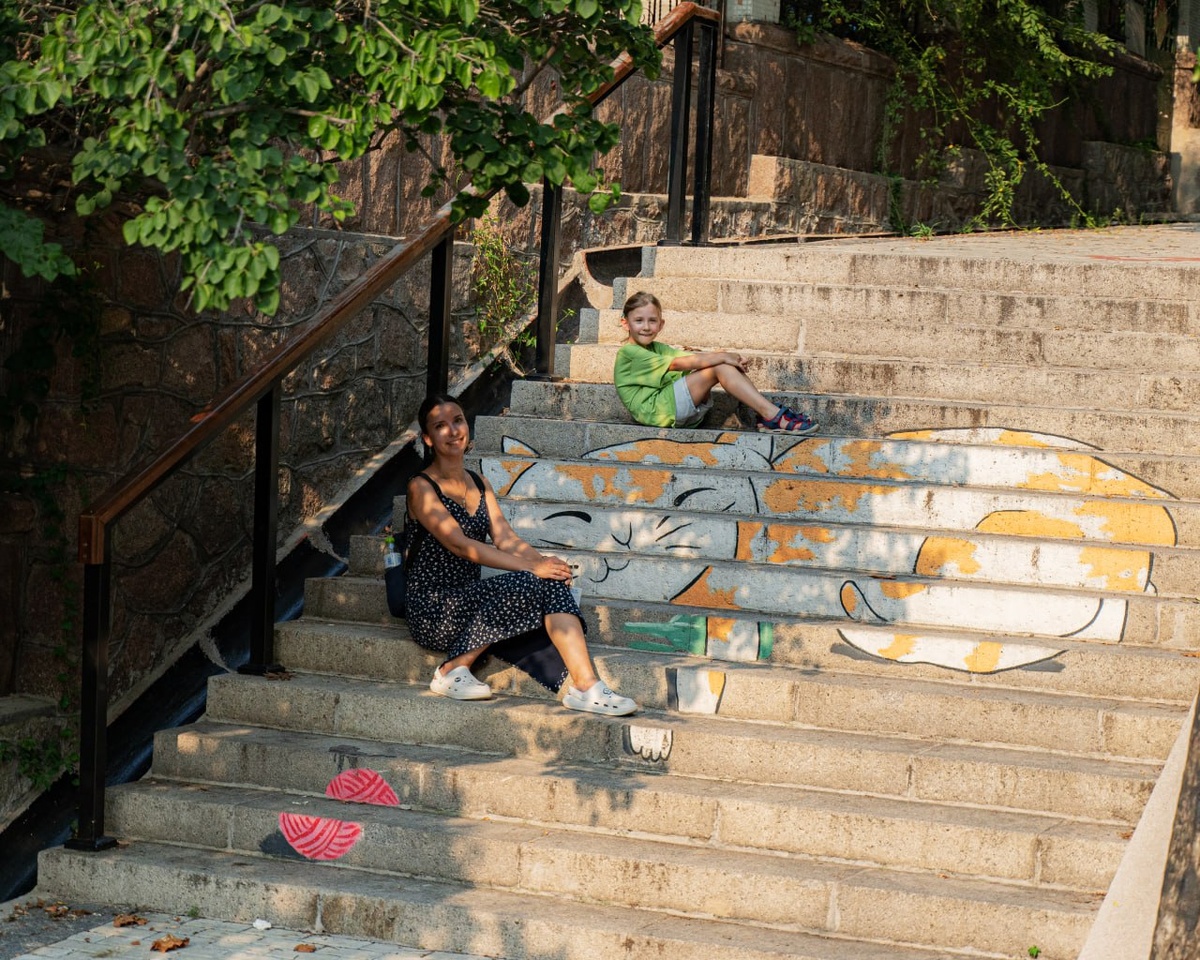(рядом с домом № 10, улица Цзинькоу 1-я, Циндао) 宝玥商店 Очень милая лестница, на которой есть крутое граффити кошки! 😼 Эту лестницу можете увидеть в кадрах 17 серии китайской дорамы "Когда я лечу к тебе" "当我飞奔向你" (Dāng wǒ fēi bēn xiàng nǐ), где герои поздравляют Су Цзайцзай 苏在在 (Sū zài zài) с Днём рождения и дарят ей тортик🎂. Точных данных о том, кто именно создал граффити, в открытых источниках нет. Скорее всего, это творчество местных жителей, а после выхода сериала - как это часто бывает с популярными дорамными локациями, фанаты начали дополнительно украшать лестницу. Но, именно сериал сделал рисунки вирусными. Кроме кошечки лестница украшена рисунками белки 🐿 на ступенях, а на стенах и даже электрических щитках другие рисунки и надписи вроде «慢慢走» («Иди не спеша»). Если вы планируете поездку в Циндао - обязательно включите эту лестницу в маршрут! Это не просто одна из локаций для съёмки фильма, а живой пример того, как дорама может оживить обычный городской уголок. Подсказку как н