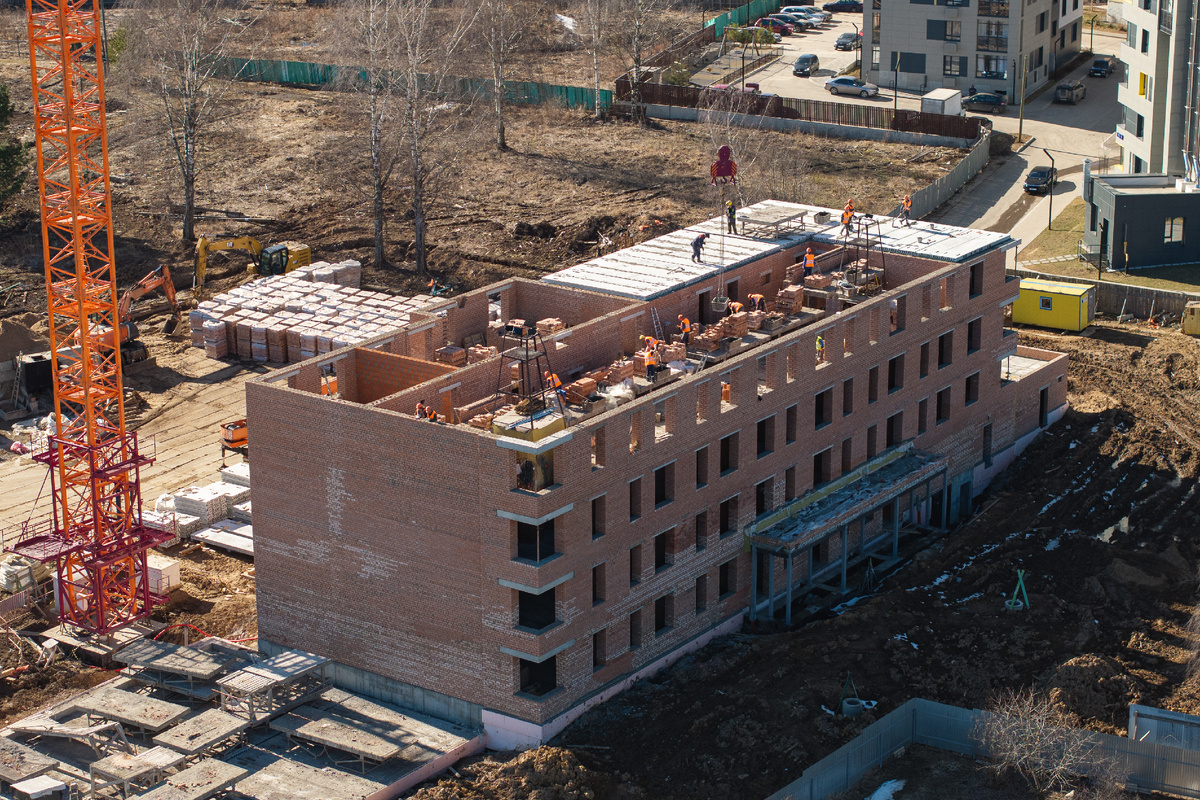 Готовность — 31 %. Продолжаем кирпичную кладку первого подъезда. Он вырос до уровня четвёртого этажа. 👩🏻💼Приходите на бесплатную консультацию: - Дом «Символ», ул. Крутая, 2 - ул. Красных Партизан, 50, 2-й этаж - ТРЦ «Макси», 1-й этаж 📲 Запишитесь на встречу: • +7 (8212) 29-31-96 • gkskat.ru/zen #СКАТ #БьярмаСКАТ