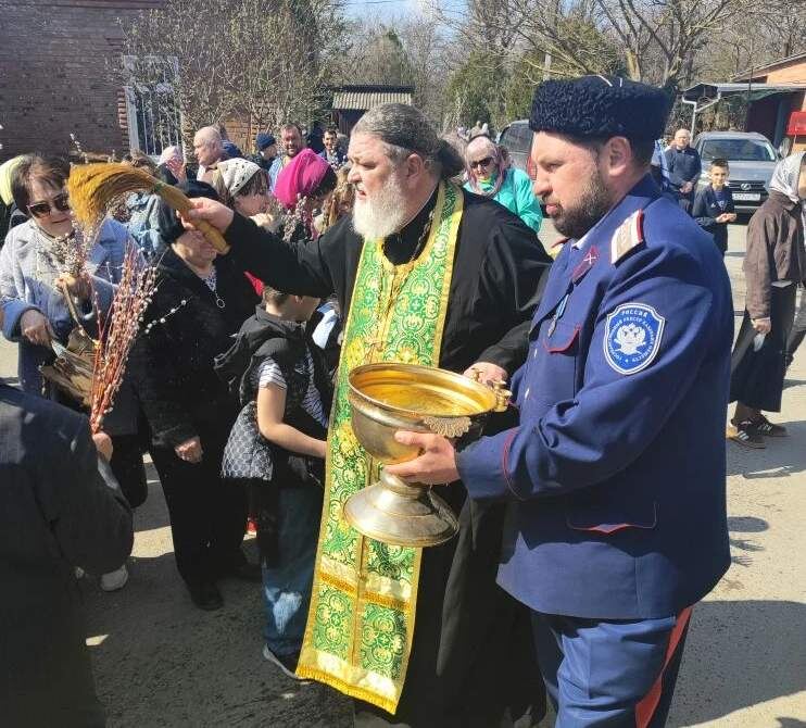 12 апреля, в день Светлого Христова Воскресения, казаки Таганрогского казачьего общества приняли активное участие в праздничных мероприятиях. Вместе со всей Русской Православной Церковью они отметили главный христианский праздник – Пасху Господню. В ночь с 11 на 12 апреля казаки с семьями во главе с атаманом городского казачьего общества, войсковым старшиной Иваном Надолинским присоединились к торжественной Пасхальной службе и крестному ходу в храме Всех Святых Таганрогского Благочиния. Настоятель храма, отец Игорь, духовный наставник казаков, поздравил их с праздником и благословил на дальнейшее служение городу, Дону и Отечеству. На протяжении пасхальных выходных, 11 и 12 апреля, более сорока дружинников и казаков городского казачьего общества «Таганрогское» обеспечивали безопасность прихожан в семи храмах города. Все мероприятия прошли без происшествий. Правление ГКО «Таганрогское» сердечно поздравляет всех казаков и их семьи с великим праздником Светлого Христова Воскресения. Ранее