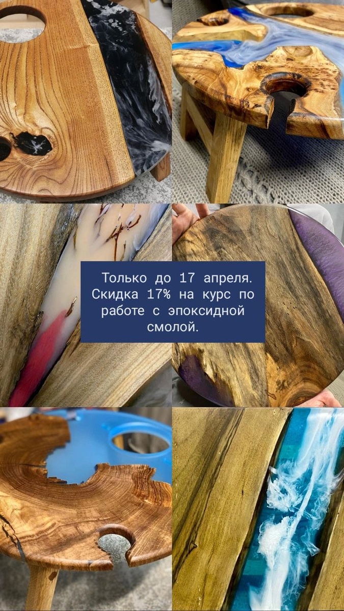 ! Даём скидку 17% на курс по работе с эпоксидной смолой. Пройди обучение и сделай свой первый столик всего за 🔥 22410 руб🔥вместо 27000 руб. Освоим все этапы работы со смолой (заливка, фрезеровка, шлифовка, полировка), научимся обрабатывать и готовить слэбы к заливке, сделаем ножки. Всё это всего за 4 занятия по 3 часа. Справится каждый! Скидка действует до 23:59 пятницы 17 апреля. Не упусти свой шанс, пиши скорее сюда: @DIYAcademycoworking