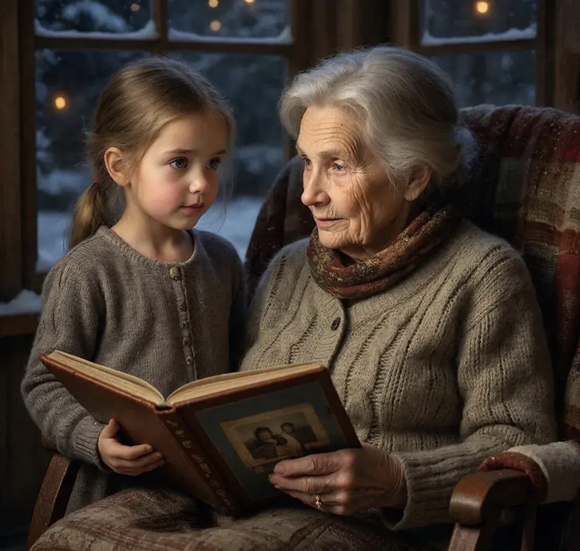 Однажды вечером Антон вернулся домой раньше обычного и застал эту картину: бабушка и внучка сидели на полу среди старых фотоальбомов.