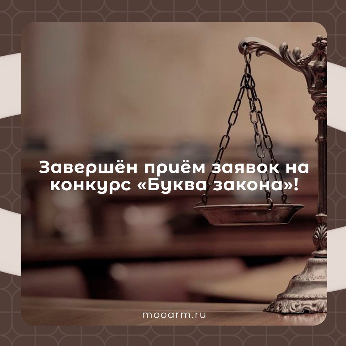 »! 🚫 15 апреля 2026 года приём заявок на участие в конкурсе завершён. Результаты конкурса будут объявлены 25 июня 2026 года. 📧 В случае возникновения вопросов пишите на info@mooarm.ru с темой письма «Буква закона». mooarm.ru VK | Дзен | Max