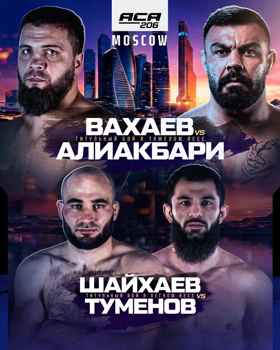 📆 • Представителям клуба «Ахмат», обладателям поясов чемпиона, предстоят первые защиты титулов в тяжелом и легком весах: 🏆 🇷🇺Алихан Вахаев — Амир Алиакбари🇮🇷 🏆 🇷🇺Дауд Шайхаев — Биберт Туменов🇷🇺 ⚠️Нас ожидает очередной крутой турнир в столице!⭐️