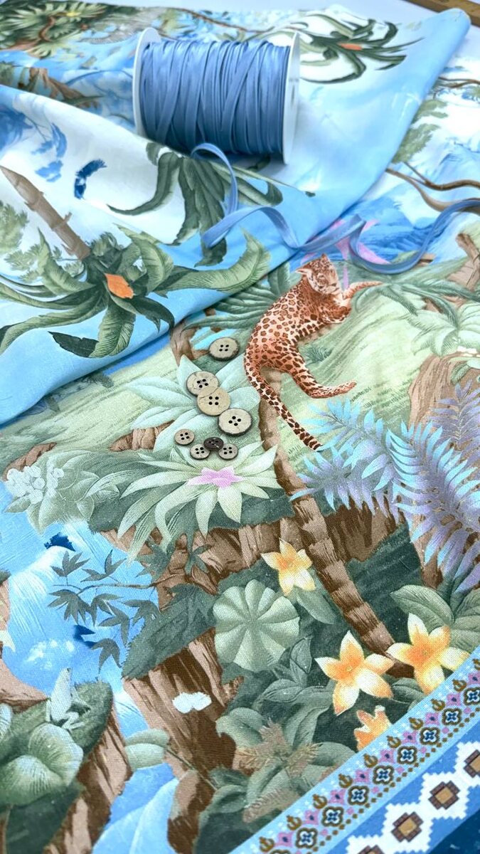 Очаровательный лен с хлопком с очень красивым ярким принтом