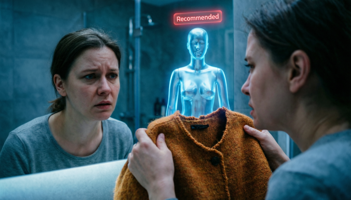 Я была одной из тех манекенщиц. Моё лицо — на тысячах коробок. Моя фигура — в алгоритме подбора «для высоких, тип прямоугольник». Я думала, что помогаю женщинам экономить время. Я не знала, что помогаю стирать их личности.