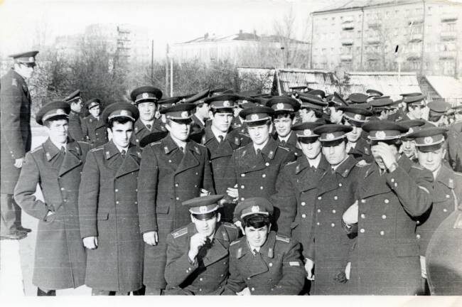 После зачисления в ряды курсантов,дали нам неделю на расчеты с гражданской жизнью,потом получили по целому узлу милицейского обмундирования, а это ой как немало- от кителя и двух брюк (на выпуск и галифе в сапоги), пары синих рубашек, одной белой,ботинки, сапоги хромовые, ботинки черные, ремни (с портупеей и парадный) ,плащ, пальто-шинель, фуражка, шапка, ну и всякие причандалы-кашне (белое и серое), галстуки (повседневный-серый и парадный-черный ), перчатки- носки всех видов, белье теплое офицерское и куча фурнитуры для т.н "оборудования" (кто служил понимают). Качество, как и положено в СССР на высшем уровне. Пришлось брать такси, т.к самому это вьюк не унести. Кстати тем, кто уже служил в милиции, раньше срока заменили некоторые виды обмундирования (чтобы не портить общий вид).