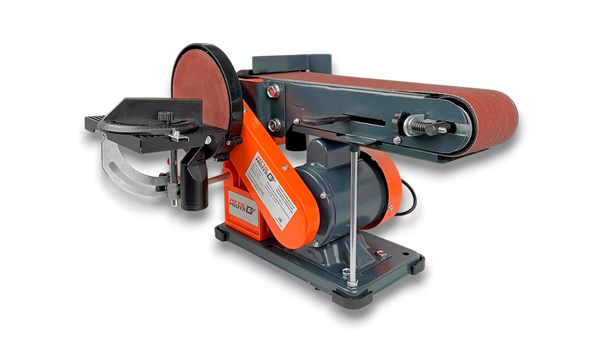 Тарельчато-ленточный шлифовальный станок – формат «два в одном», в котором вращающийся диск и движущаяся лента работают от общего привода. Столик с регулируемым упором фиксирует деталь под заданным углом, и мастеру больше не нужно полагаться на глазомер, и он просто подаёт заготовку к абразиву. Именно поэтому на таком станке удобно доводить торцы рамочных деталей, подгонять шипы к проушинам, выводить внешние радиусы на декоративных накладках или снимать фаску с сотни одинаковых брусков для обрешётки – быстро, точно, повторяемо.