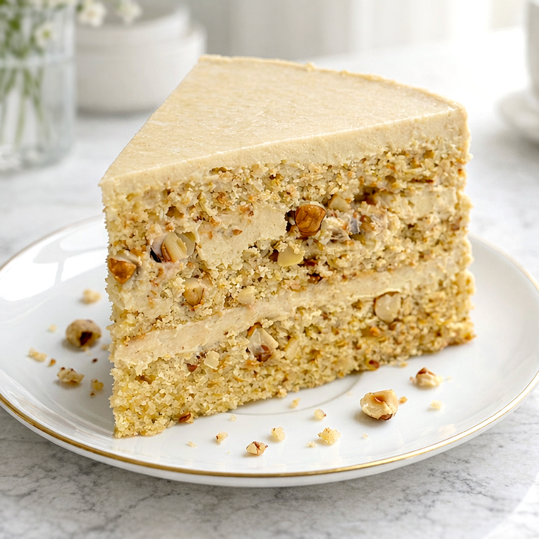 КБЖУ: 163 /9/11/6 Бисквит: ◽ Арахисовая мука 100 г ◽ Яйца 4 шт. ◽ Эритрит 50 г ◽ Разрыхлитель 6 г ◽ Щепотка соли ◽ Ксантановая камедь 1/3 ч.л ◽ Ванилин — по желанию Крем: ◽ Сухое обезжир. молоко 50 г ◽ Ряженка 400 г (+ для пропитки) ◽ Вода 30 г ◽ Желатин 6 г ◽ Сахзам 8 г (х10 от сахара) ◽ Рубленые орехи 40 г