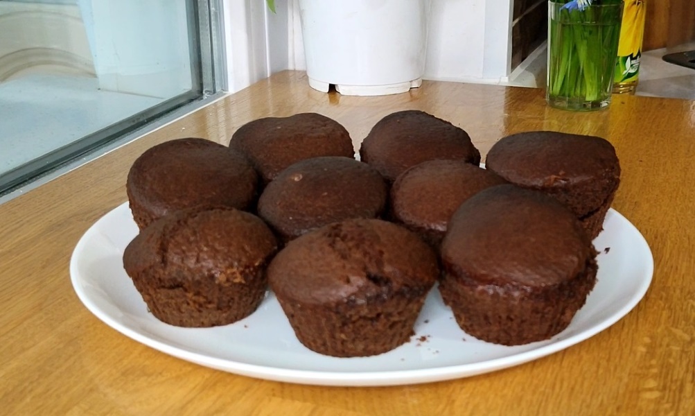 Шоколадные кексы с какао очень вкусная, ароматная выпечка. Я готовила с замороженными сливами. Сразу скажу, что получилось вкусно. Слива хорошо пропеклась и внутри она напоминает конфитюр. Не слишком приторный вкус кекса оттеняет слива, кажется, она создана, чтобы подчеркивать шоколадные ноты. Для приготовления шоколадных кексов возьмите следующие продукты: СПОСОБ ПРИГОТОВЛЕНИЯ Берем объемную миску, наливаем кефир. Все продукты комнатной температуры. Яйца моем щеткой, разбиваем по одному в чашку, затем добавляем к кефиру яйца. Сливочное масло заранее растопили и отправляем в миску. Насыпаем сахар и просто хорошо все перемешать до однородности. Подготовим сыпучие продукты. Муку обязательно следует просеять через сито, чтобы насытить её кислородом. Соединяем муку, соду, какао. Смешиваем все продукты, замешиваем тесто. Тщательно перемешиваем, добиваемся однородности, разбиваем комочки. Тесто получается, как густая сметана. Берем формочки для выпечки, у меня несколько силиконовых, несколь