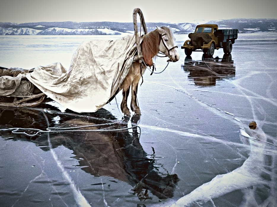 1958 год. Где-то на бескрайних просторах Советского Союза, предположительно на льду Байкала, двое мужчин идут за горючим. Рядом с ними редчайший ГАЗ-51 первых серий с полудеревянной кабиной и двухоконными колесными дисками. Глядя на этот снимок работы Юрия Кривоносова, я невольно задумываюсь как же ценили тогда каждую машину, каждую каплю топлива.
