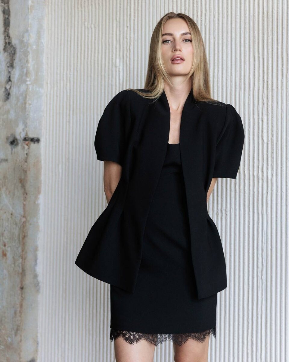 🖤 Мини-платье с кружевом по линии низа — это игра полутонов: строгий силуэт и мягкая, почти интимная деталь. Оно не требует сопровождения — звучит само, меняя характер от дневной сдержанности к вечерней выразительности. Архитектурный жакет добавляет структуру. Линия плеч, выверенный крой — и образ обретает форму. В комплекте — безупречный баланс, с денимом — уже легкая ирония стиля. Меняются обстоятельства — офис, встреча, театр, не меняется главное: ощущение точности в каждом движении.