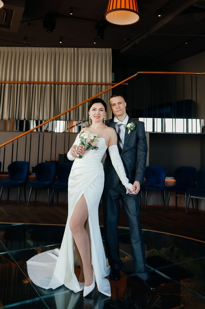 После ЗАГСа — фотопрогулка по ресторану. Там есть несколько «фирменных» точек: арочная лестница, качели с видом на город, зона с живыми растениями. Если погода позволяет — можно выйти на смотровую площадку «Выше только любовь» на 92-м этаже. Это уже совсем другой уровень: ветер, высота 354 метра, вид на 360 градусов. Кадры оттуда получаются кинематографичными, но важно помнить про безопасность: никаких резких движений, никаких «а давай с края». Мы, фотографы, знаем, как снять эффектно и безопасно.